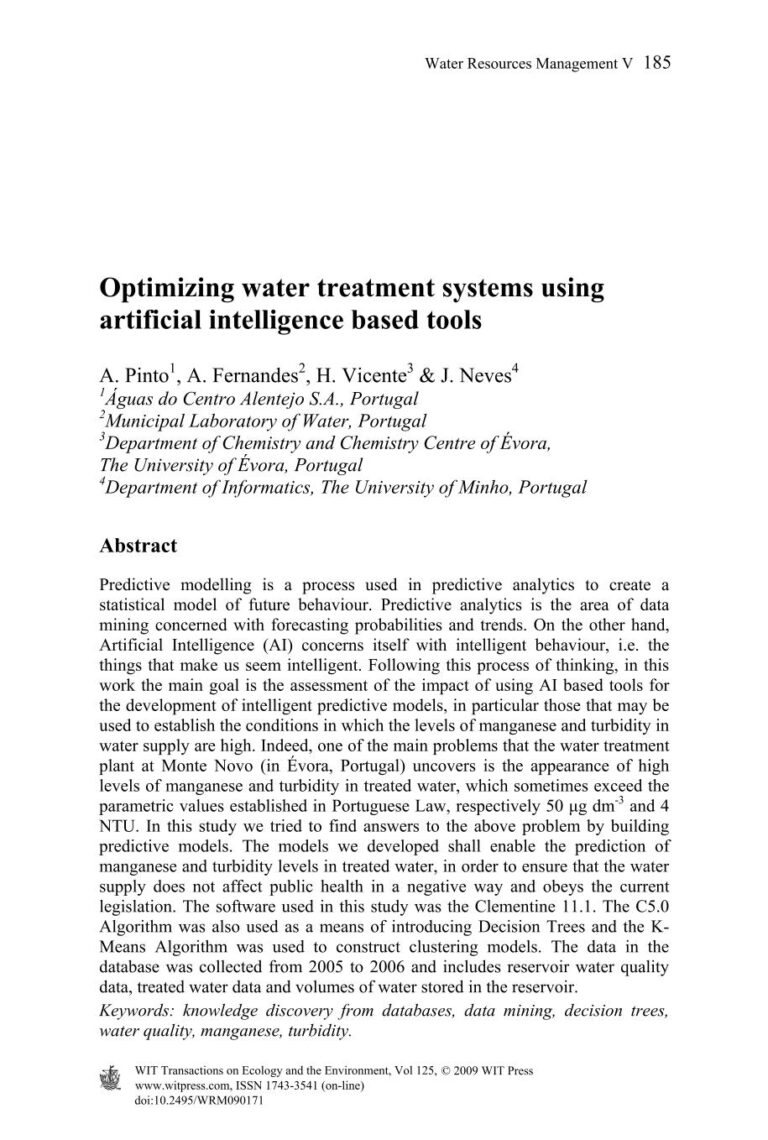 Optimizing Water Treatment Systems Using Artificial Intelligence Based Tools 32 25 View details Download