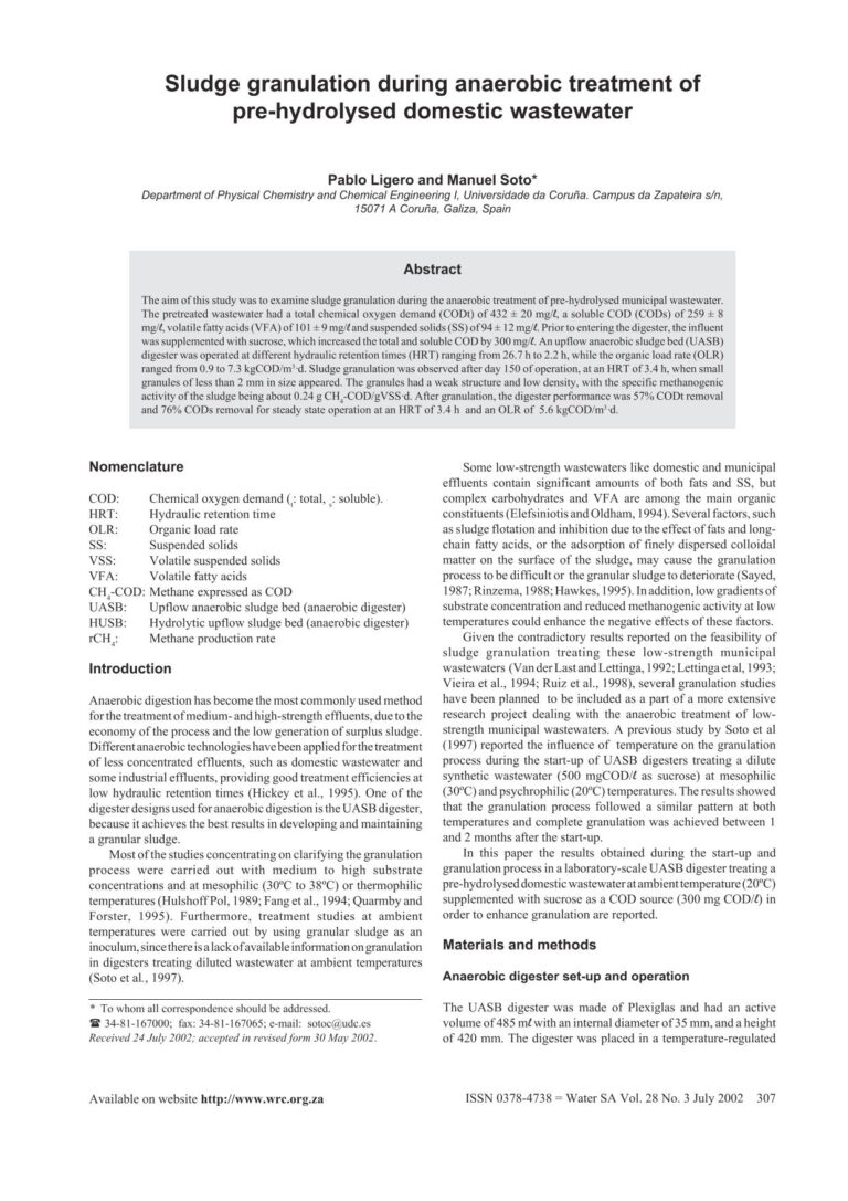 Sludge Granulation During Anaerobic Treatment Of Pre-Hydrolysed Domestic Wastewater 31 30 View details Download