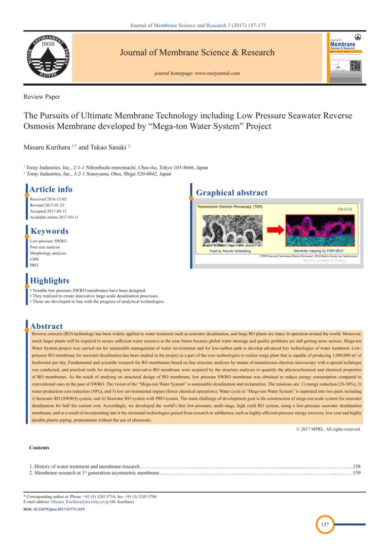 The Pursuits Of Ultimate Membrane Technology Including Low Pressure Seawater Reverse Osmosis Membrane 44 27 View details Download