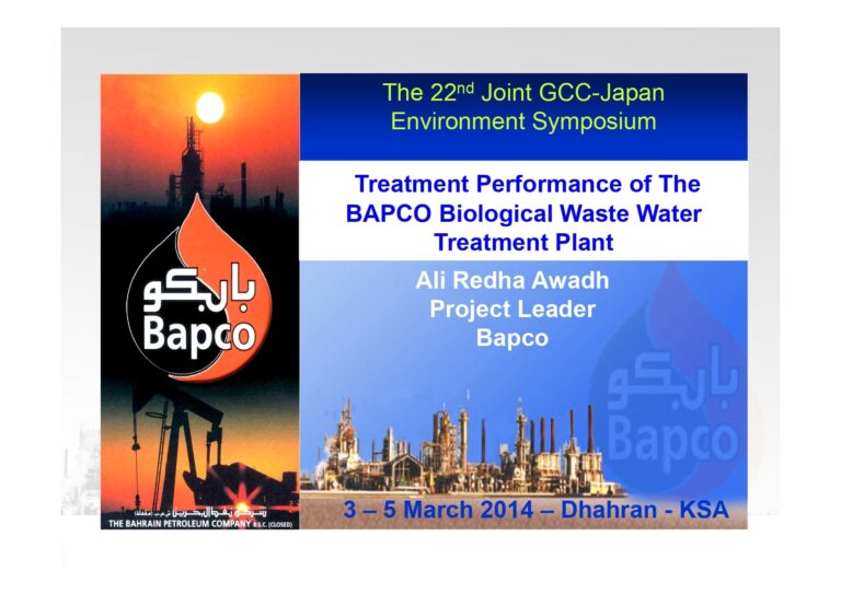 Treatment Performance of The BAPCO Biological Waste Water Treatment Plant 37 32 View details Download