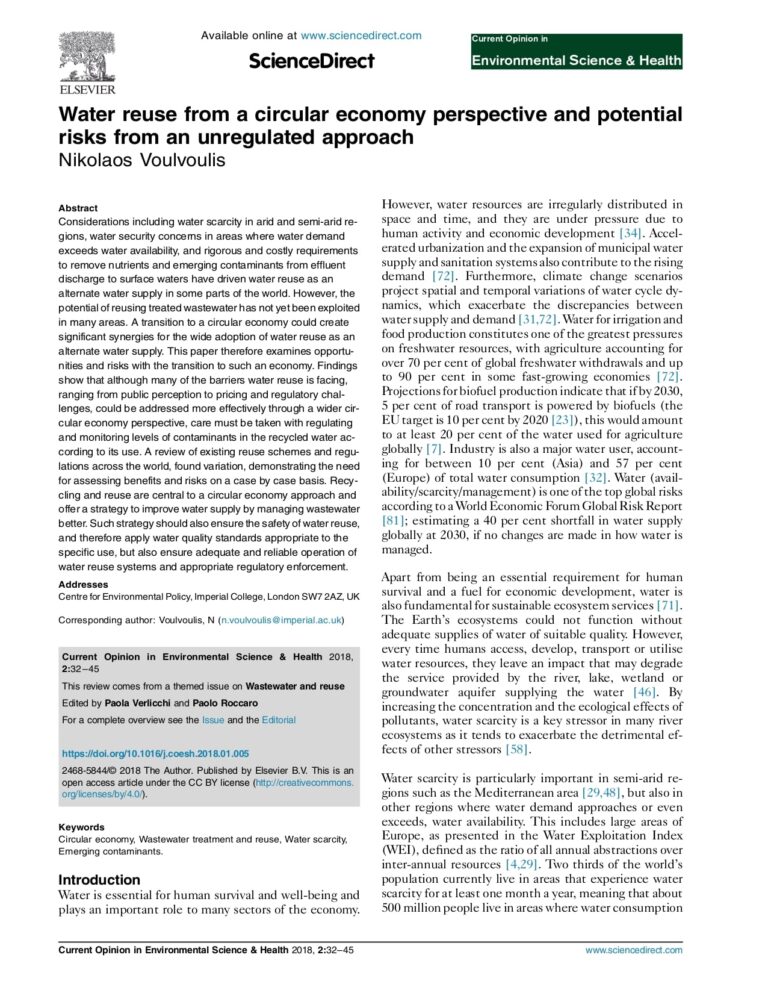 Water Reuse From A Circular Economy Perspective And Potential Risks From An Unregulated Approach 32 16 View details Download