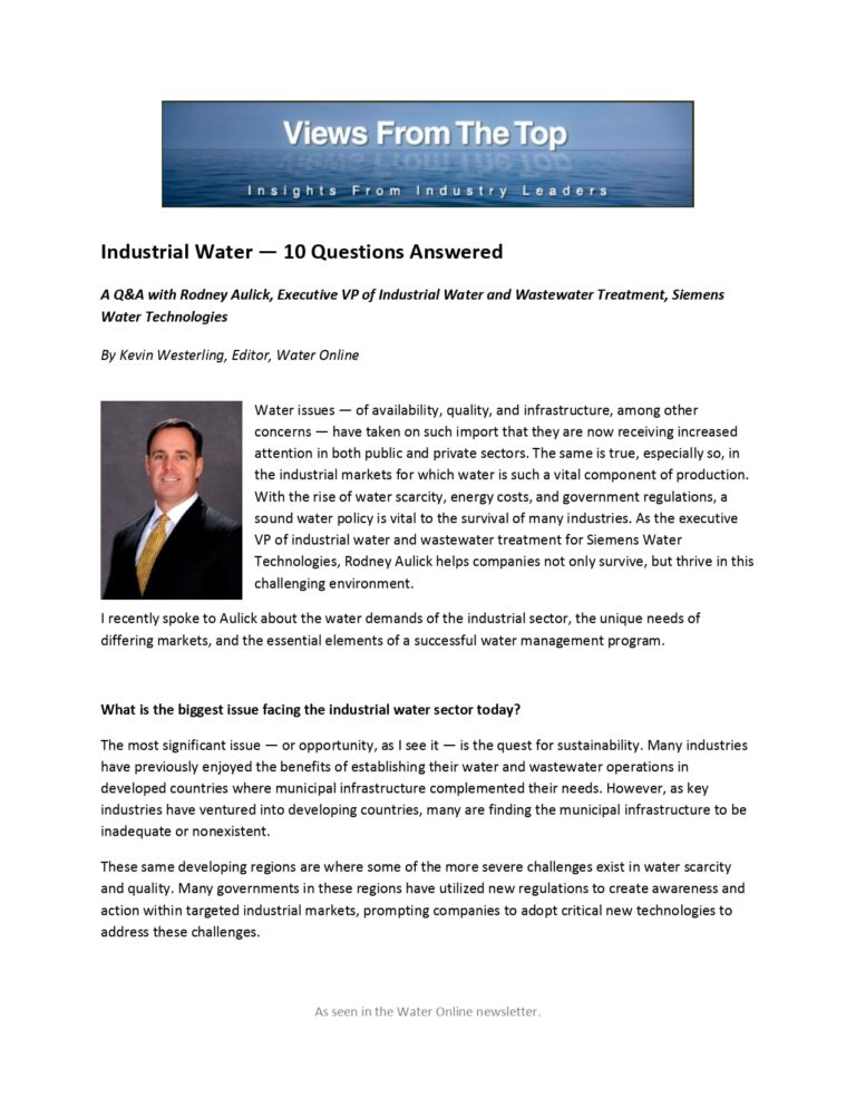 A Q&A with Rodney Aulick, Executive VP of Industrial Water and Wastewater Treatment, Siemens Water Technologies 36 17 View details Download