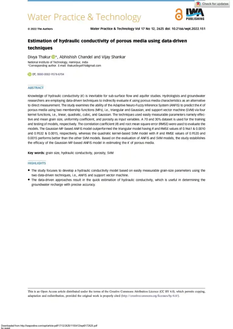 Estimation of Hydraulic Conductivity of Porous Media Using Data-Driven Techniques 36 27 View details Download