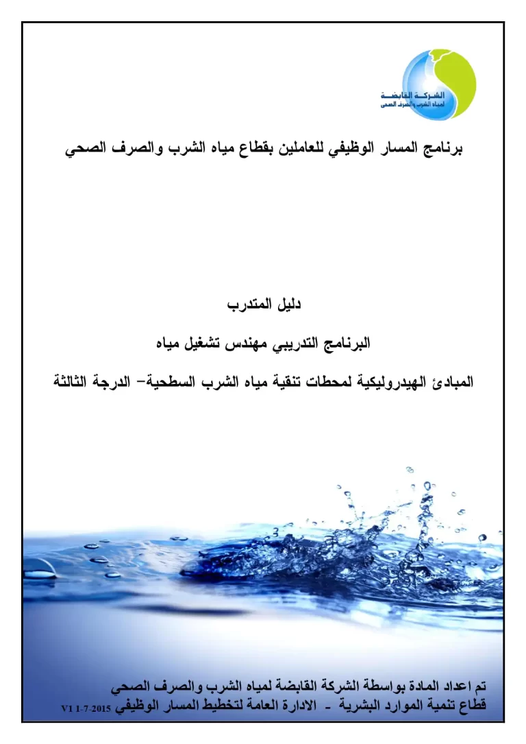 البرنامج التدريبى مهندس تشغيل مياه -المبادئ الهيدروليكية لمحطات تنقية مياه الشرب السطحية – الدرجة الثالثة 35 15 View details Download