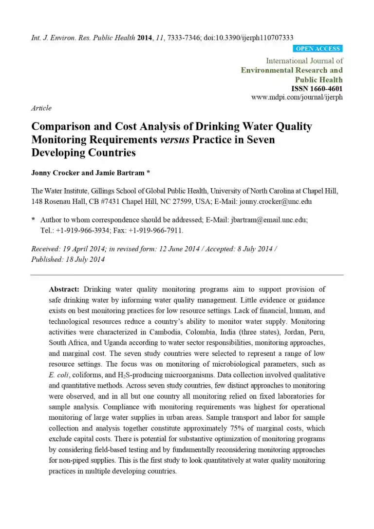 Comparison and Cost Analysis of Drinking Water Quality Monitoring Requirements versus Practice in Seven Developing Countries 35 15 View details Download