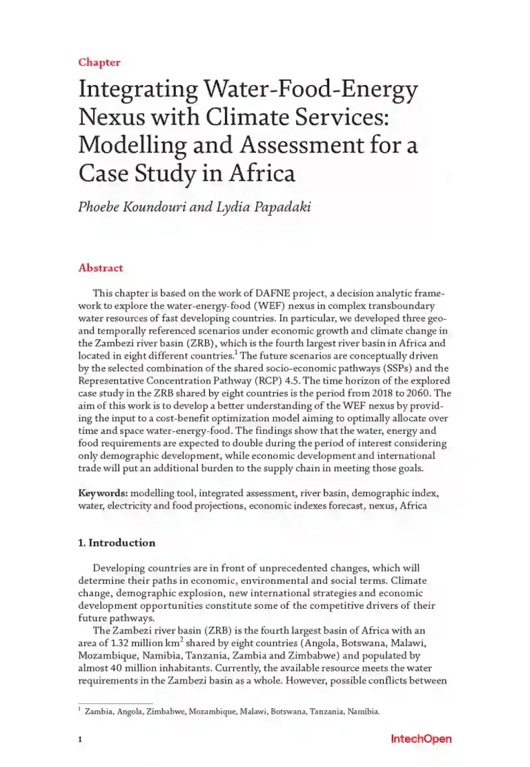 Chapter Integrating Water-Food-Energy Nexus with Climate Services: Modelling and Assessment for a Case Study in Africa 40 16 View details Download