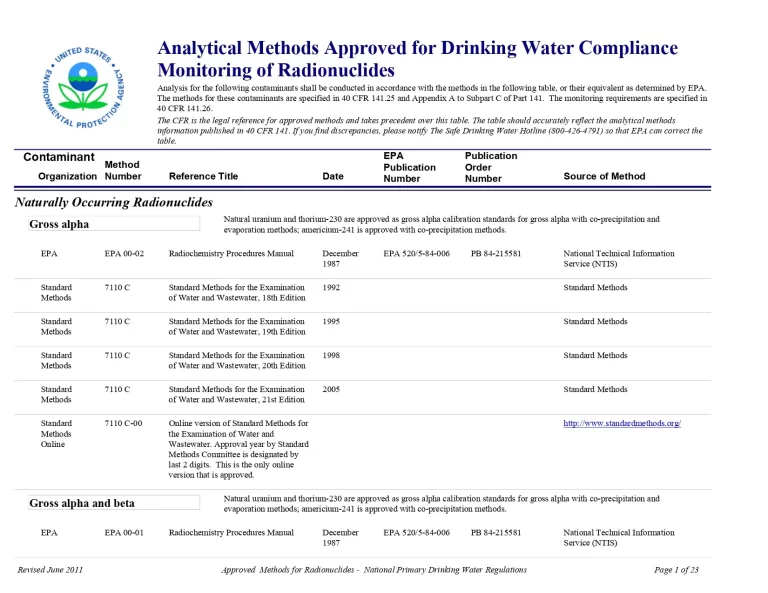 Analytical Methods Approved for Drinking Water Compliance Monitoring of Radionuclides 36 17 View details Download