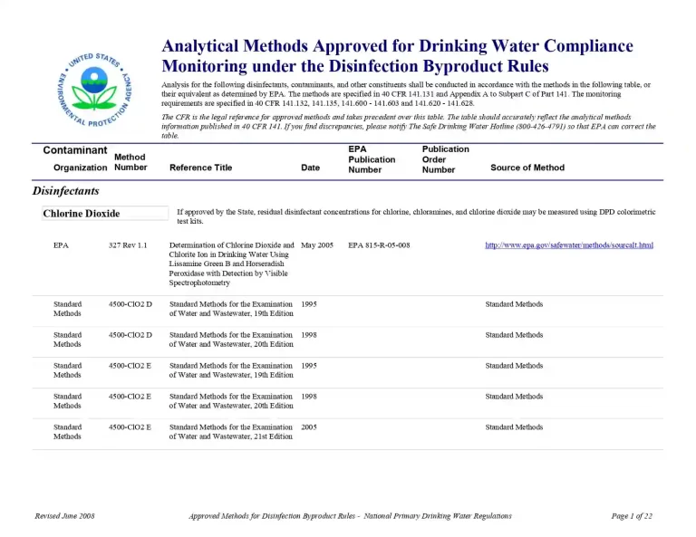 Analytical Methods Approved for Drinking Water Compliance Monitoring under the Disinfection Byproduct Rules 36 20 View details Download