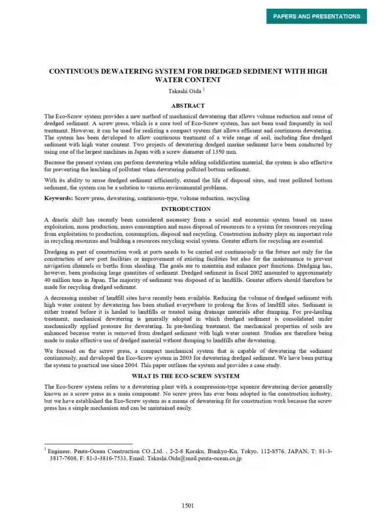 Continuous Dewatering System for Dredged Sediment with High Water Content 36 26 View details Download