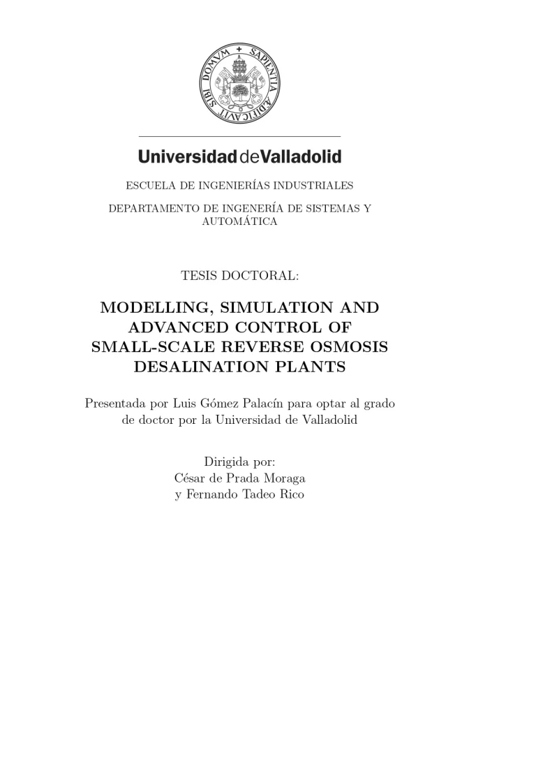 Modelling, Simulation and Advanced Control of Small-Scale Reverse Osmosis Desalination Plants 39 27 View details Download
