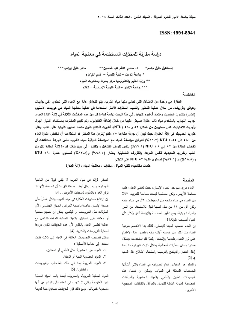 دراسة بكتريولوجية كيمياوية وفيزياوية لمياه الشرب المعدنية المتداولة في الأسواق المحمية لمدينة تكريت 30 15 View details Download