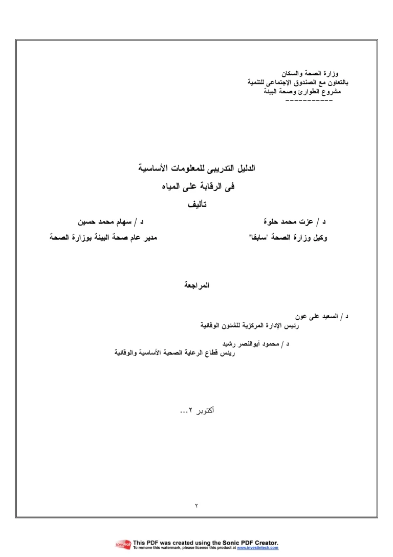 البرنامج التدريبي لوظيفة تشغيل مهندس صرف صحي – الدرجة الثانية موازنة التشغيل وفقاً لمؤشرات الأداء واقتصاديات التشغيل 43 18 View details Download