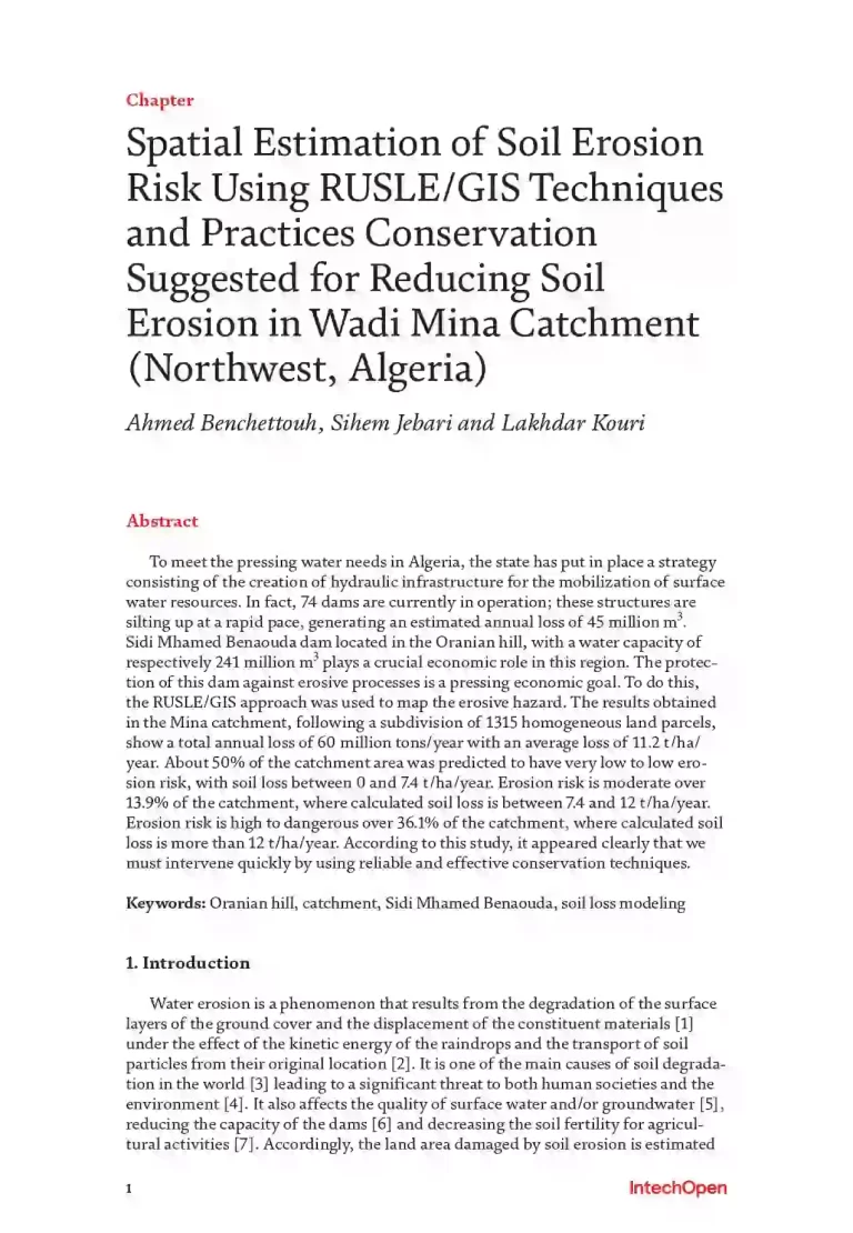 Spatial Estimation of Soil Erosion Risk Using RUSLE/GIS Techniques and Practices Conservation Suggested for Reducing Soil Erosion in Wadi Mina Catchment (Northwest, Algeria) 42 18 View details Download
