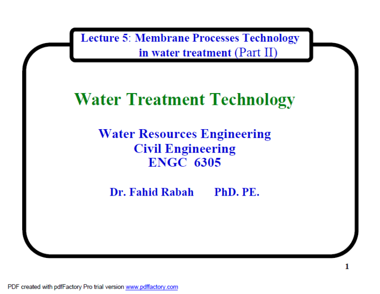 Water Treatment Technology Lecture 5: Membrane Processes Technology in water treatment (Part II) 4 2 View details Download