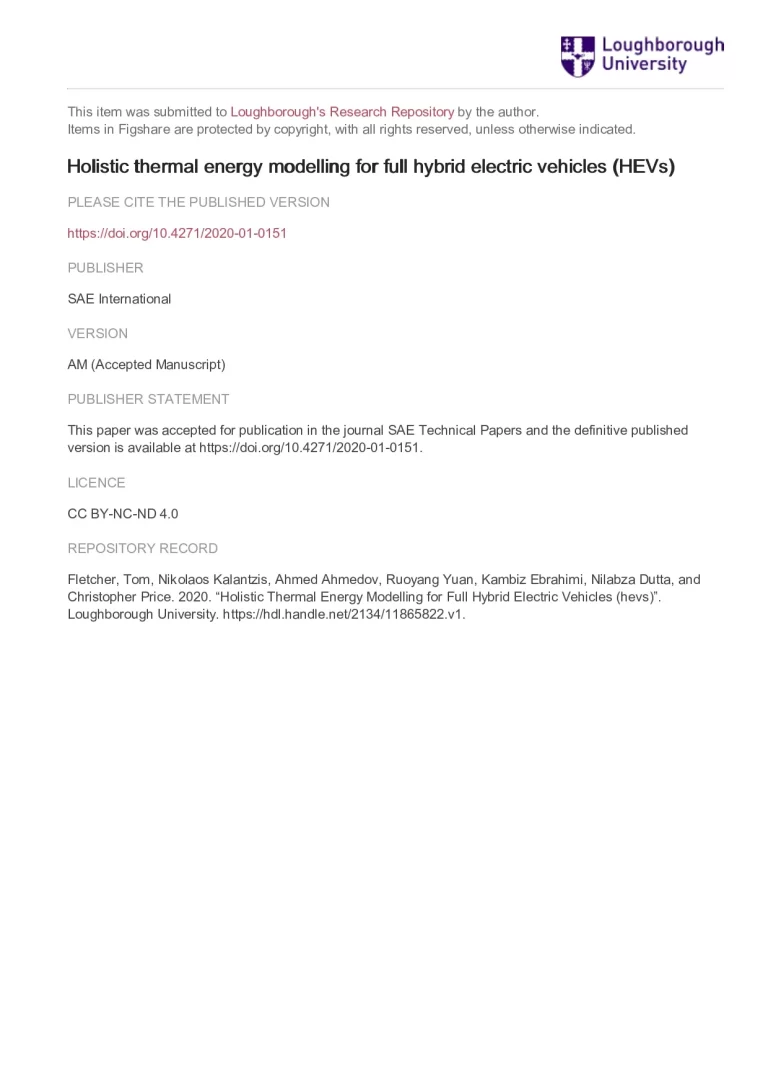 Holistic thermal energy modelling for full hybrid electric vehicles (HEVs) 70 26 View details Download