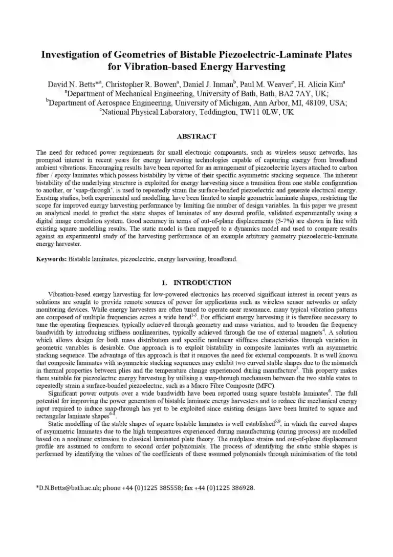 Investigation of Bistable Piezo-Composite Plates for Broadband Energy Harvesting 72 67 View details Download