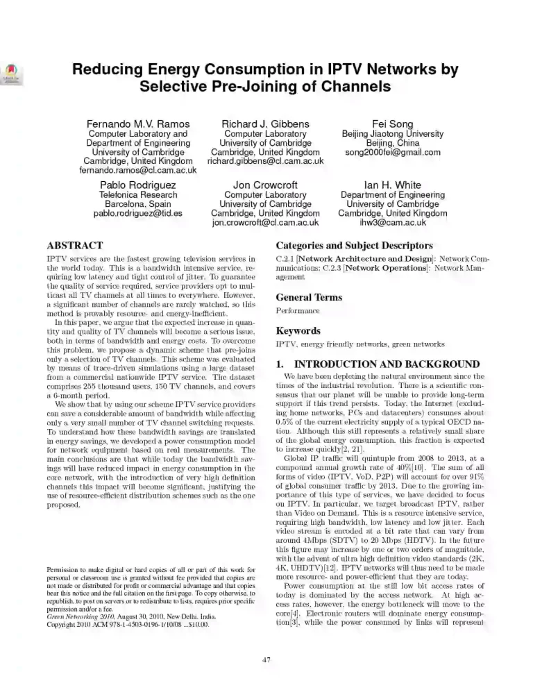 Reducing Energy Consumption in IPTV Networks by Selective Pre-Joining of Channels 67 26 View details Download