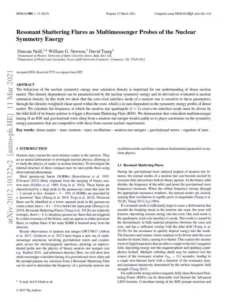 Resonant Shattering Flares as Multimessenger Probes of the Nuclear Symmetry Energy 65 64 View details Download