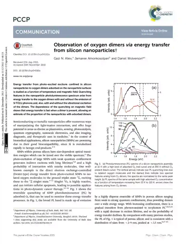 Observation of Oxygen Dimers via Energy Transfer from Silicon Nanoparticles 50 24 View details Download