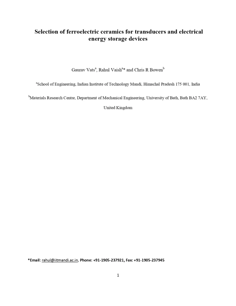 Selection of Ferroelectric Ceramics for Transducers and Electrical Energy Storage Devices 53 40 View details Download