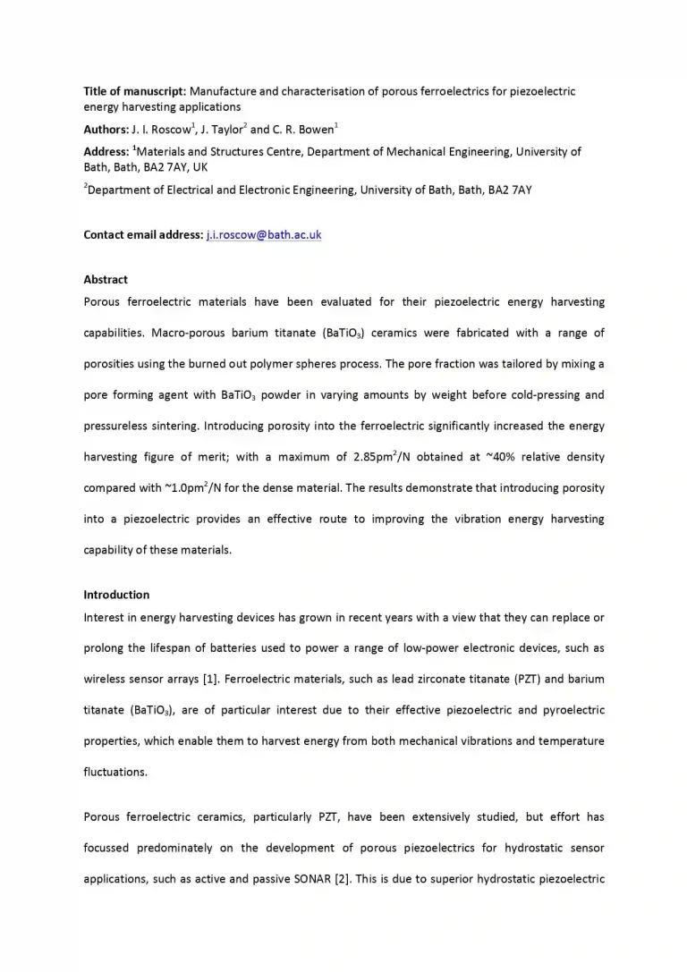 Manufacture and Characterization of Porous Ferroelectrics for Piezoelectric Energy Harvesting Applications 52 21 View details Download