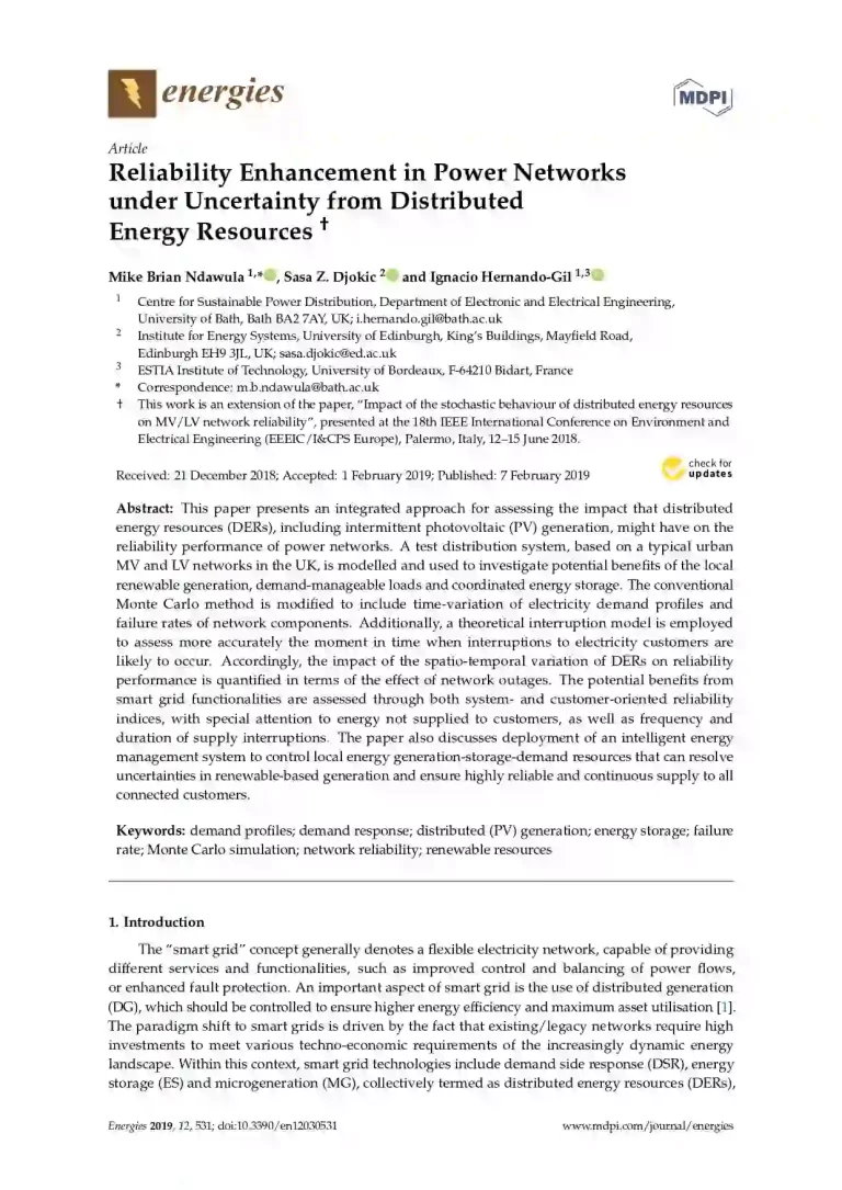 Reliability Enhancement in Power Networks under Uncertainty from Distributed Energy Resources 53 19 View details Download