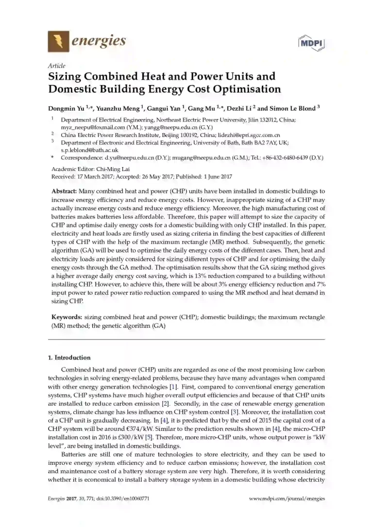 Sizing Combined Heat and Power Units and Domestic Building Energy Cost Optimisation 44 40 View details Download