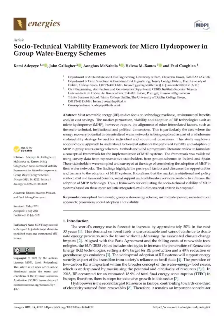 Socio-Technical Viability Framework for Micro Hydropower in Group Water-Energy Schemes 48 33 View details Download
