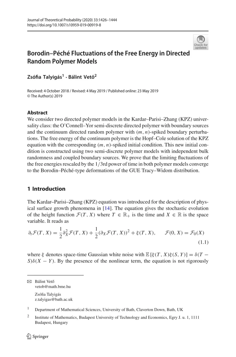 Borodin–Péché Fluctuations Of The Free Energy In Directed Random Polymer Models 48 26 View details Download