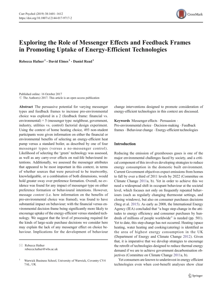 Exploring The Role Of Messenger Effects And Feedback Frames In Promoting Uptake Of Energy-Efficient Technologies 47 30 View details Download