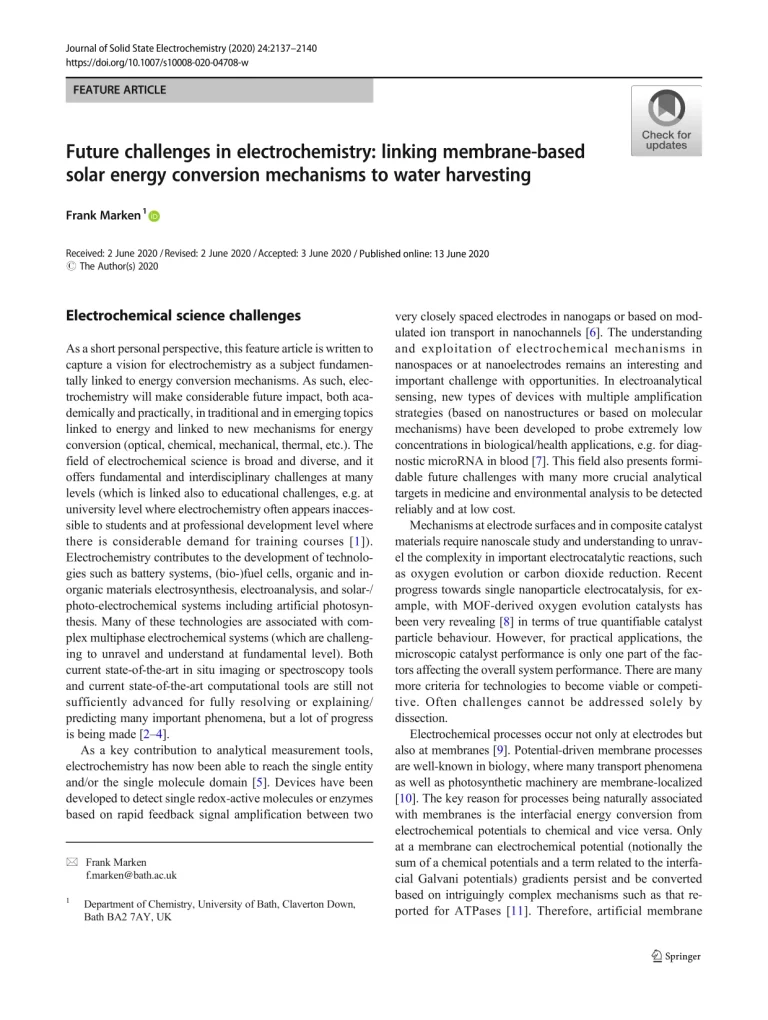 Future Challenges In Electrochemistry Linking Membrane-Based Solar Energy Conversion Mechanisms To Water Harvesting 47 28 View details Download