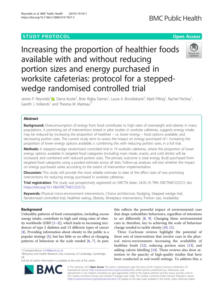 Increasing The Proportion Of Healthier Foods Available With And Without Reducing Portion Sizes And Energy Purchased In Worksite Cafeterias 57 30 View details Download