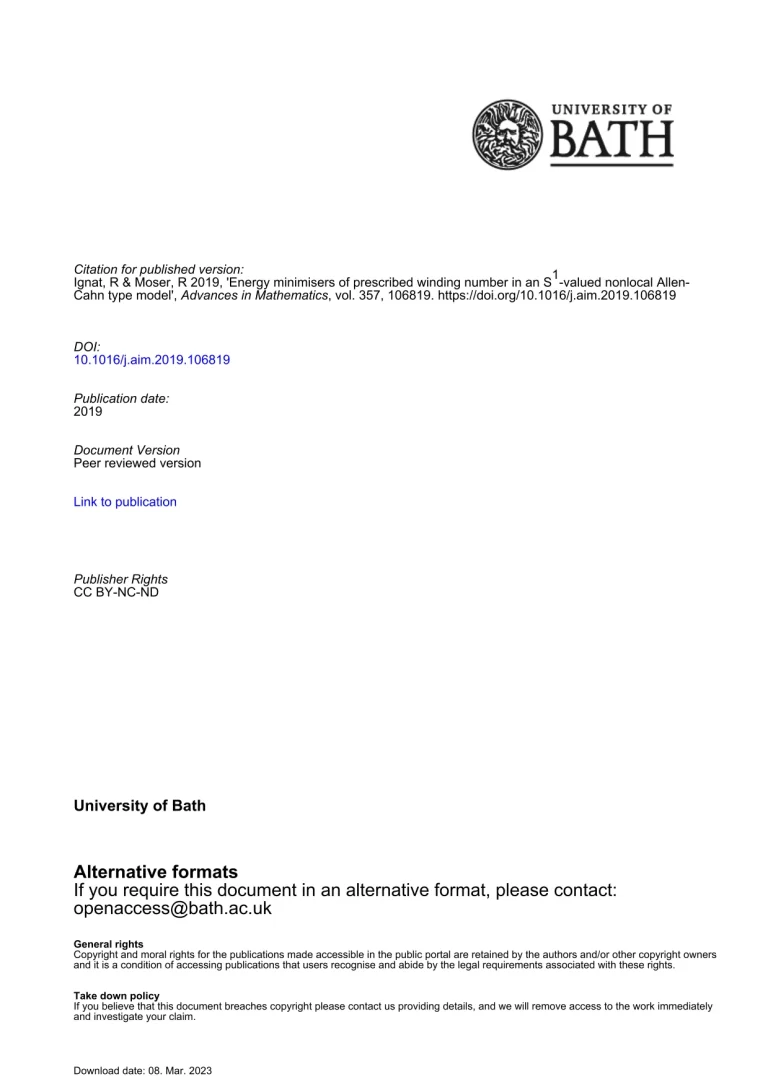 Energy Minimisers Of Prescribed Winding Number In An Valued Nonlocal Allen-Cahn Type Model 47 20 View details Download