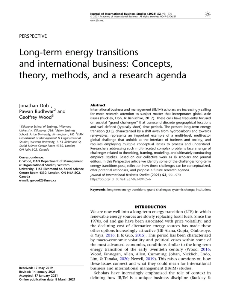 Long-Term Energy Transitions And International Business Concepts, Theory, Methods, And A Research Agenda 56 32 View details Download