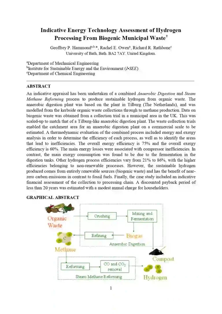 Indicative Energy Technology Assessment of Hydrogen Processing From Biogenic Municipal Waste 42 37 View details Download