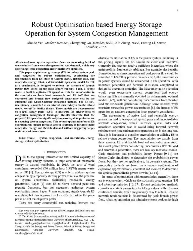 Robust Optimisation Based Energy Storage Operation for System Congestion Management 49 41 View details Download