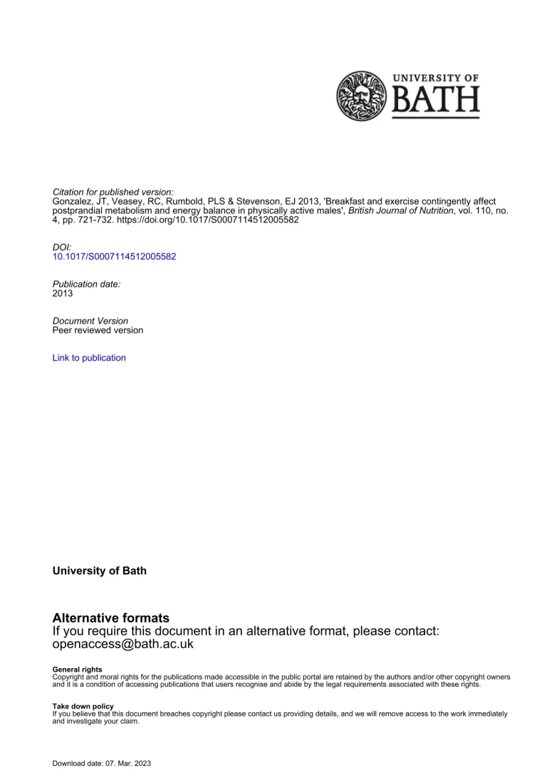 Breakfast And Exercise Contingently Affect Postprandial Metabolism And Energy Balance In Physically Active Males 41 22 View details Download