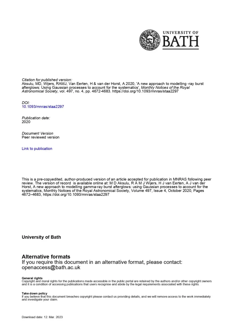 A New Approach to Modelling Gamma-Ray Burst Afterglows: Using Gaussian Processes to Account for the Systematics 40 29 View details Download