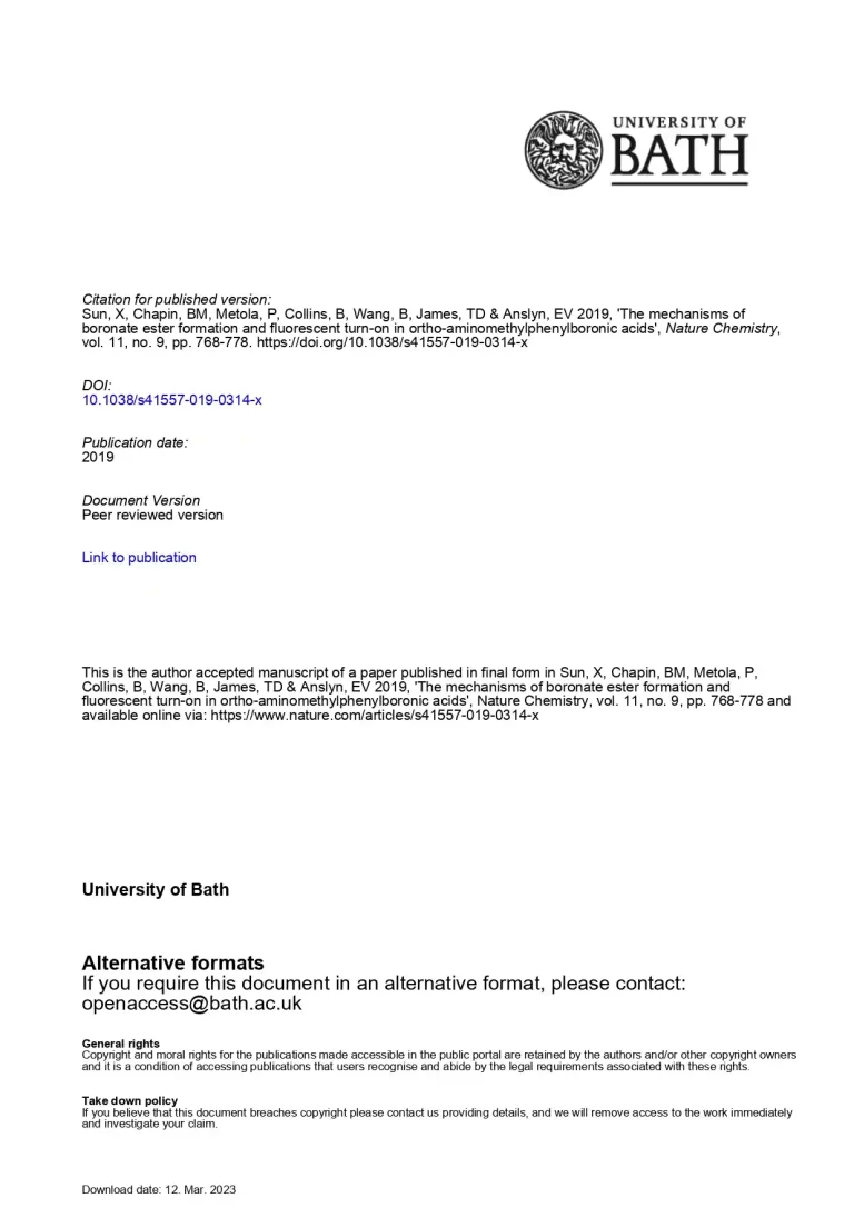 A Treatise Concerning the Mechanisms of Boronate Ester Formation and Fluorescent Turn-on in Ortho-Aminomethylphenylboronic Acids 36 25 View details Download