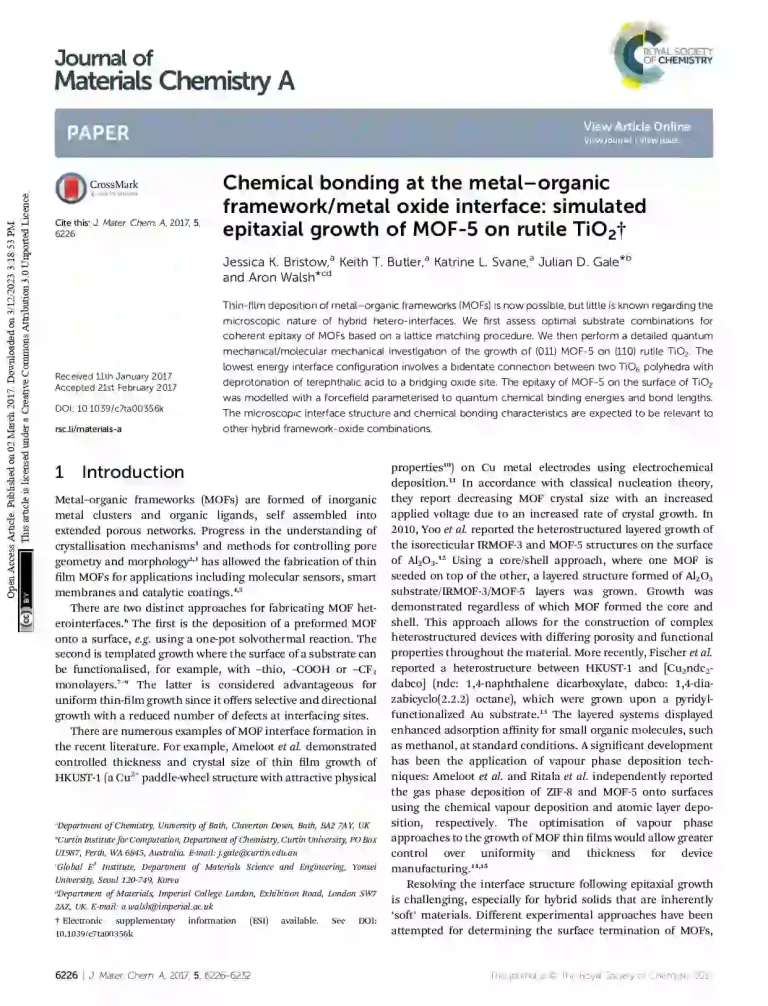 Chemical Bonding at the Metal–Organic Framework/Metal Oxide Interface: Simulated Epitaxial Growth of Mof-5 on Rutile Tio2 60 38 View details Download