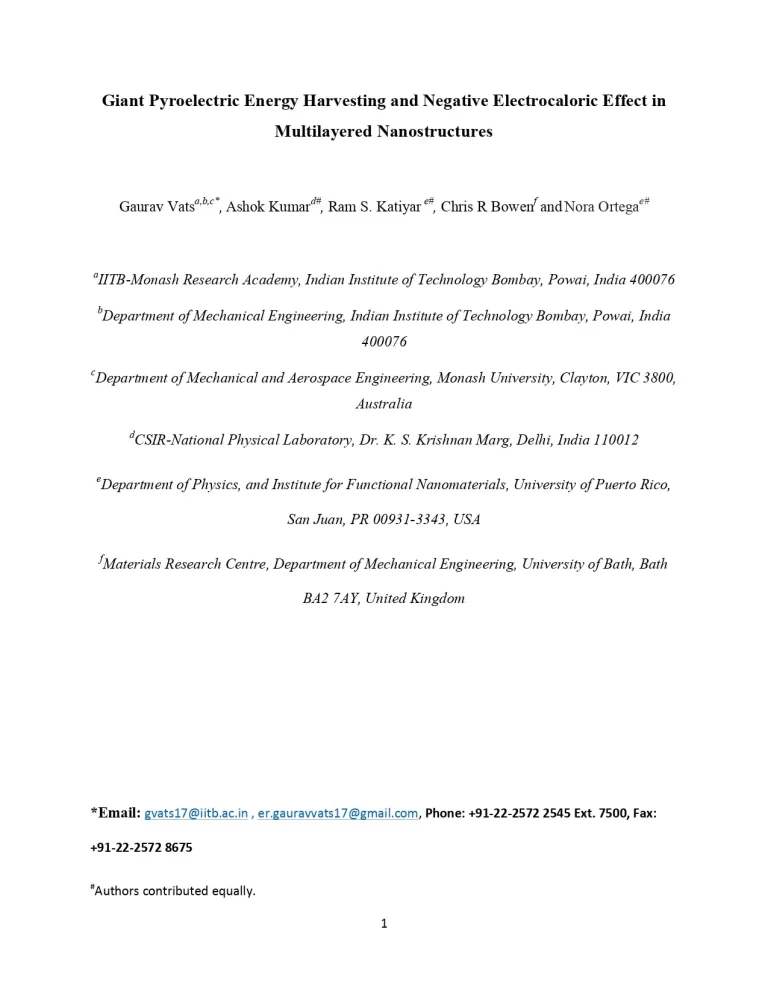 Giant Pyroelectric Energy Harvesting and Negative Electrocaloric Effect in Multilayered Nanostructures 37 12 View details Download