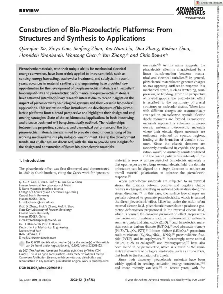 Construction of Bio-Piezoelectric Platforms: from Structures and Synthesis to Applications 43 27 View details Download