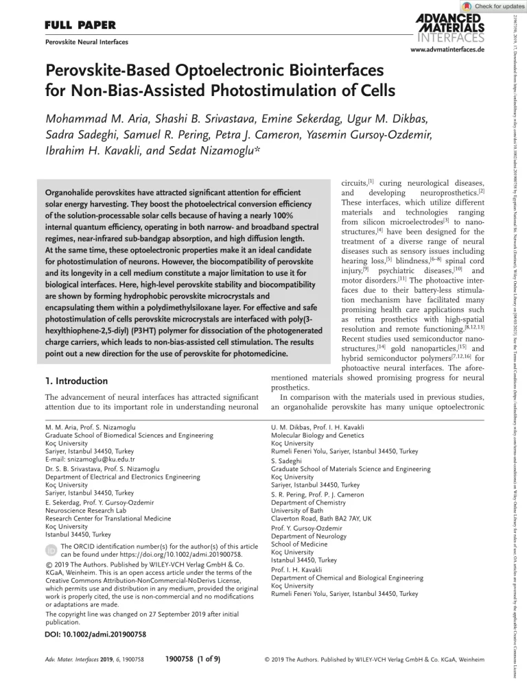 Perovskite-Based Optoelectronic Biointerfaces for Non-Bias-Assisted Photostimulation of Cells 37 15 View details Download