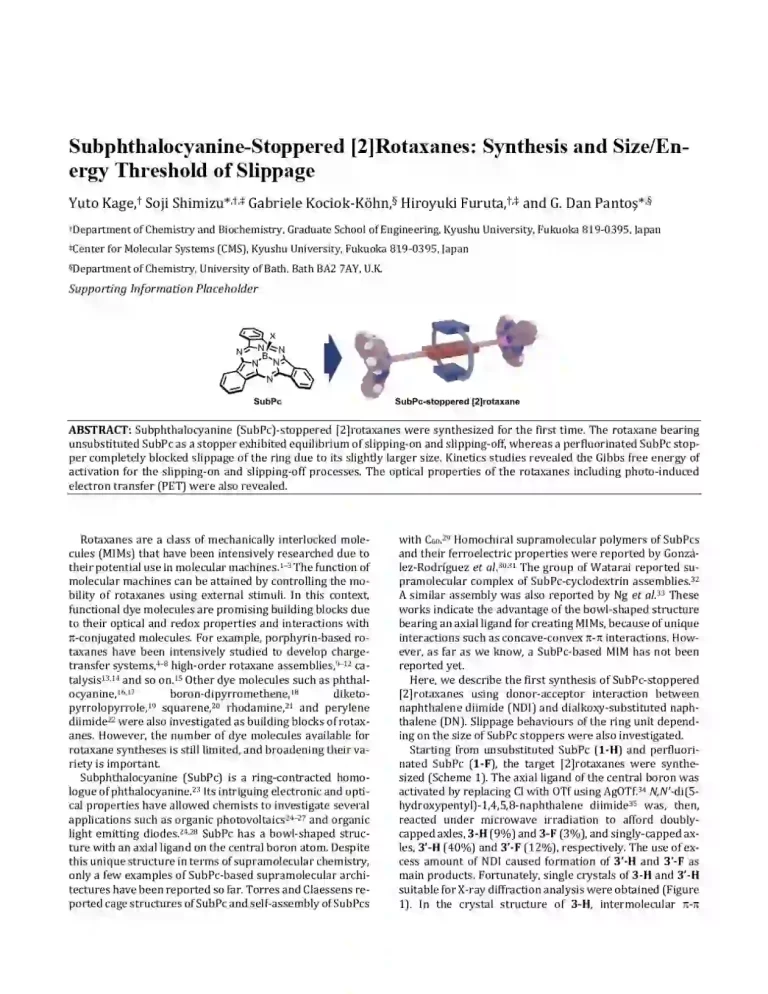 Subphthalocyanine-Stoppered [2]Rotaxanes: Synthesis and Size/Energy Threshold of Slippage 56 34 View details Download