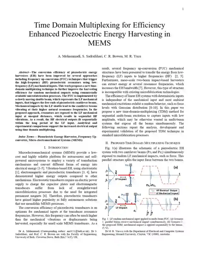 Time Domain Multiplexing for Efficiency Enhanced Piezoelectric Energy Harvesting in MEMS 38 24 View details Download