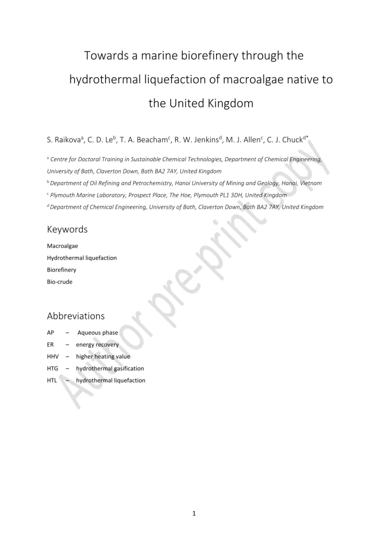 Towards A Marine Biorefinery Through The Hydrothermal Liquefaction Of Macroalgae Native To The United Kingdom 33 16 View details Download