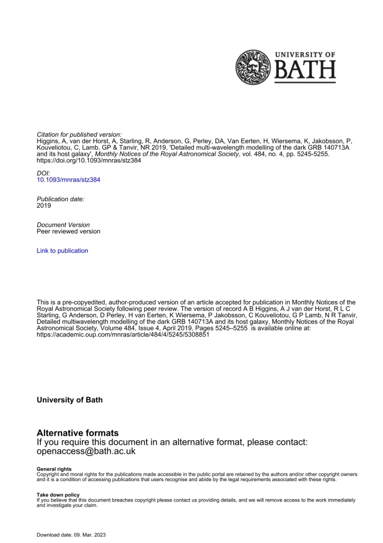 Detailed Multi-Wavelength Modelling Of The Dark GRB 140713A And Its Host Galaxy 40 30 View details Download