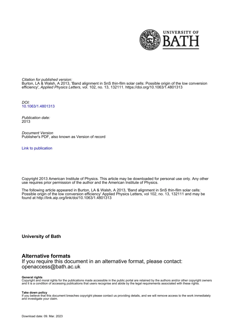 Band In SnS Thin-Film Solar Cells – Possible Origin Of The Low Conversion Efficiency 41 24 View details Download