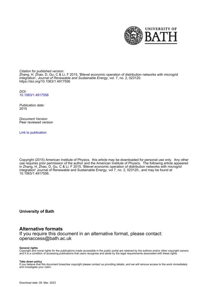 Bilevel Economic Operation of Distribution Networks with Microgrid Integration 33 32 View details Download