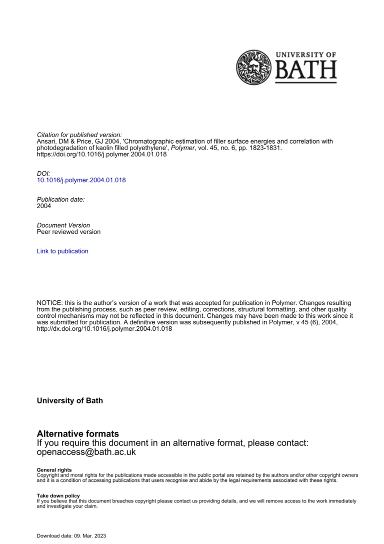 Chromatographic Estimation Of Filler Surface Energies And Correlation With Photodegradation Of Kaolin Filled Polyethylene 39 29 View details Download